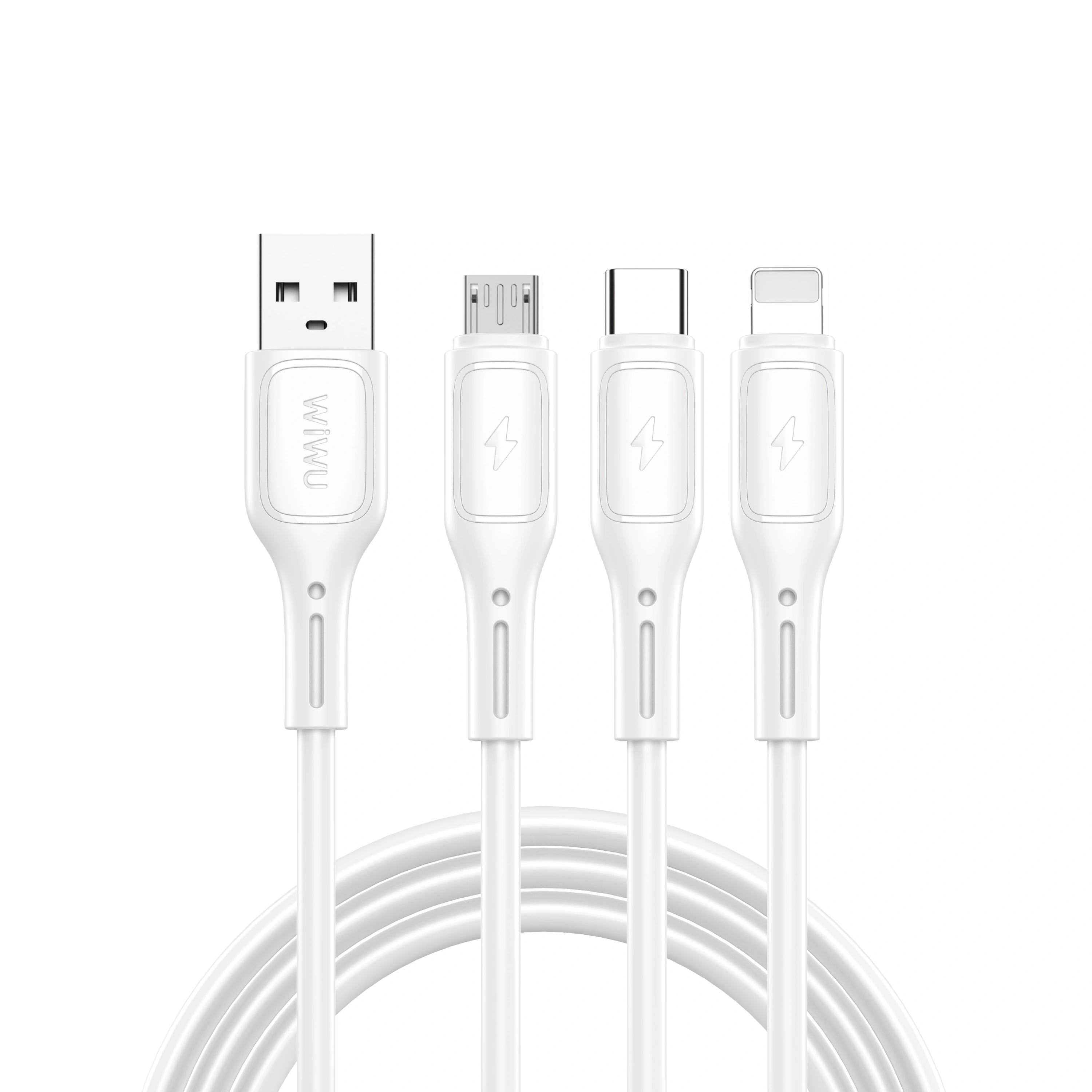 WIWU Starlink USB-A to Micro+USB-C+iP Cable White |